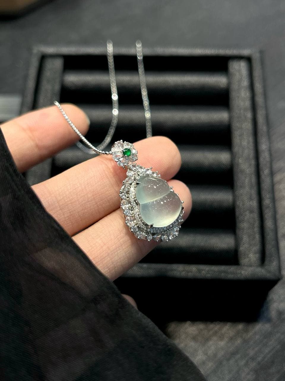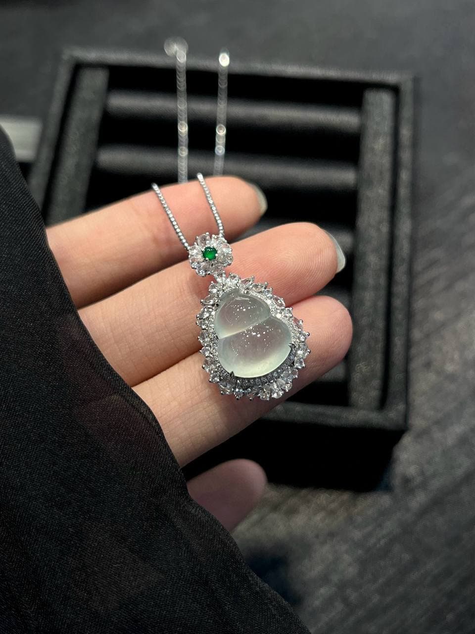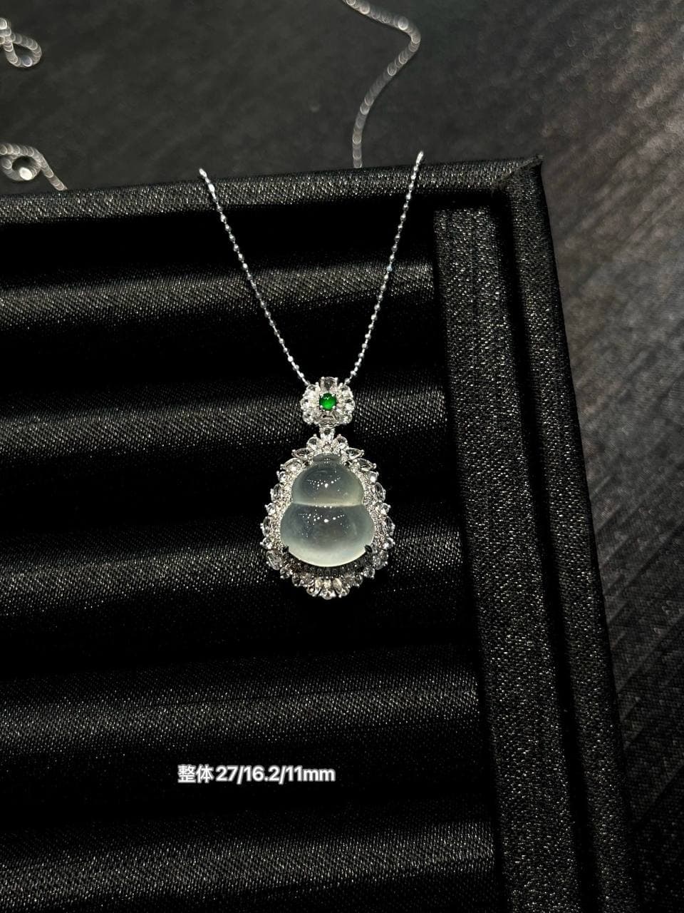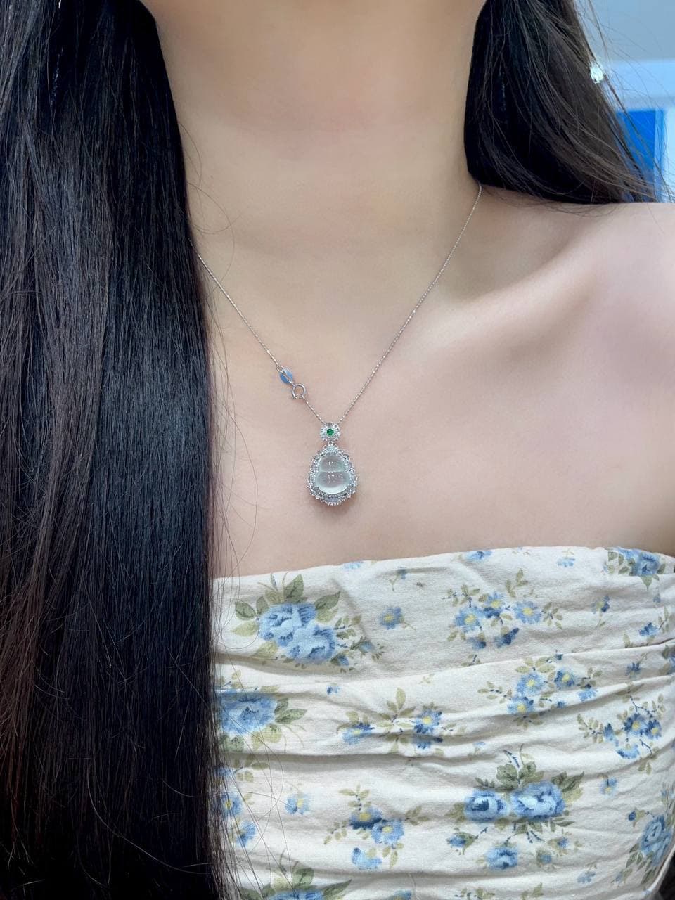 葫芦项链的设计结合了葫芦的吉祥寓意与翡翠的高贵气质,既能增添佩戴者的气质,又具备一定的保平安、招财等功能。