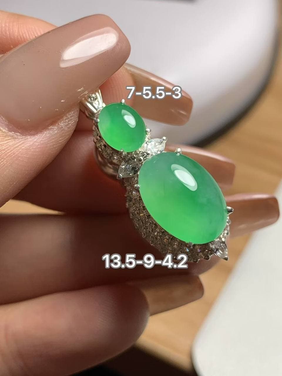 冰种大鸽子蛋,果阳绿调太吸睛了~ 底子冰润,通透感很舒服,飘了一抹天然绿花,灵气十足 虽有些棉纹,但完全不挡它的通透和气质,反而多了点自然原生感 上手就是大气款,想要有辨识度、有个性的翡翠,这颗太合适了! 喜欢不千篇一律的美,就来看看它吧~
